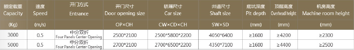 汽車電梯土建參數(shù)表